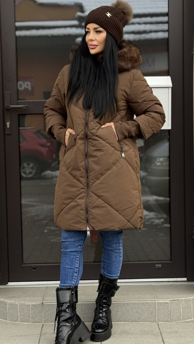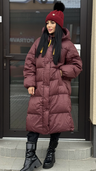 Bordová dlhá zimná bunda