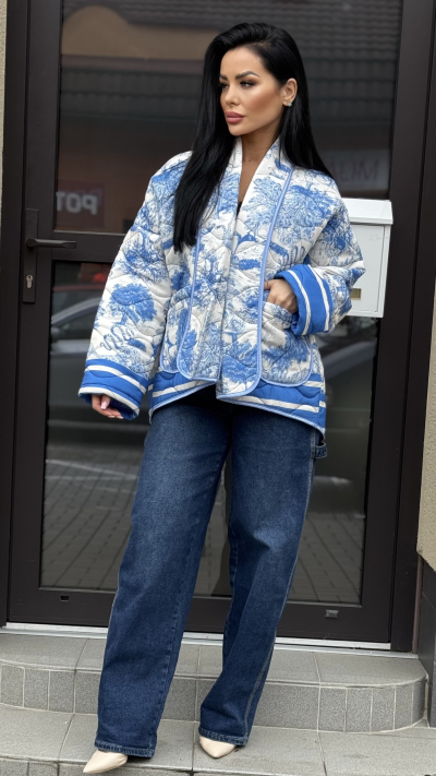 Modrobiela prešívaná bunda
