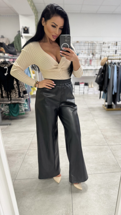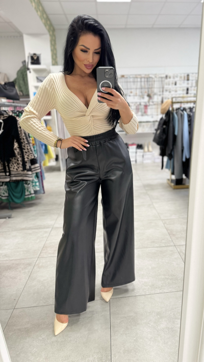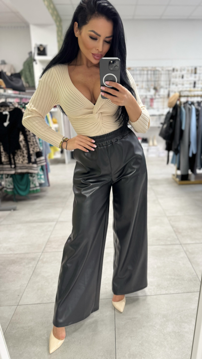 Štýlové, Dámské nohavice v čiernom prevedení. Nohavice sú vyrobené z imitácie kože. Veľkosť je Univerzálna, v páse sú na gumu, čím sa pekne prispôsobia na postavu.