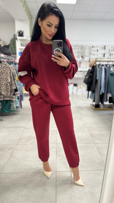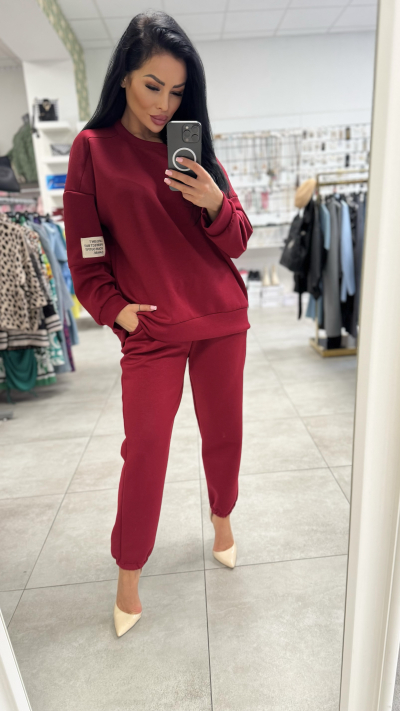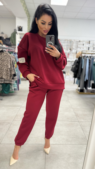 Dámska bordová dvojdielna súprava Pohodlie a štýl v jednom! Táto trendy dámska dvojdielna súprava v bordovej farbe je ideálna na voľný čas, nákupy či cestovanie. Mikina s dlhým rukávom má ležérny strih, ktorý poskytuje komfort pri každodennom nosení. Teplákové nohavice s elastickým pásom a manžetami na spodku sedia skvelo na postave a vďaka praktickým vreckám sú aj veľmi funkčné. Kombinácia je univerzálna – môžeš ju nosiť s teniskami na športovo alebo s lodičkami, ak chceš vytvoriť originálny fashion look. • Farba: bordová • Strih: mikina + teplákové nohavice • Materiál: mäkký a príjemný na dotyk • Detaily: elastický pás, vrecká, zakončenie na gumu • Veľkosť: UNI (vhodná pre S–L) Súprava, ktorá ti prinesie pohodlie aj moderný vzhľad!