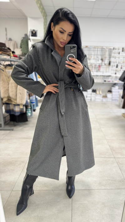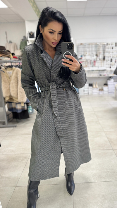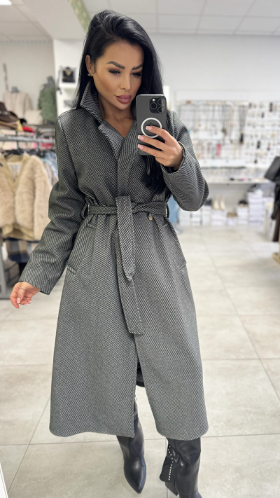 Dámsky dlhý kabát s viazaním v páse – univerzálna veľkosť