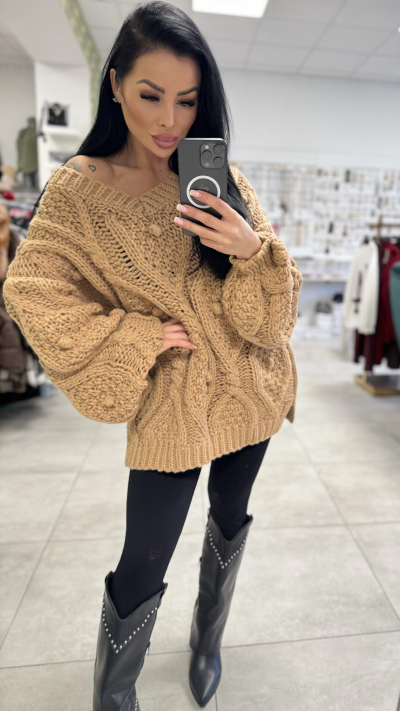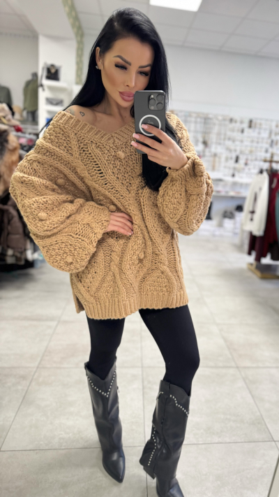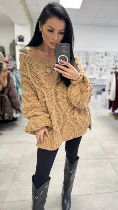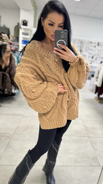 Oversize pletený sveter - karamelová farba
