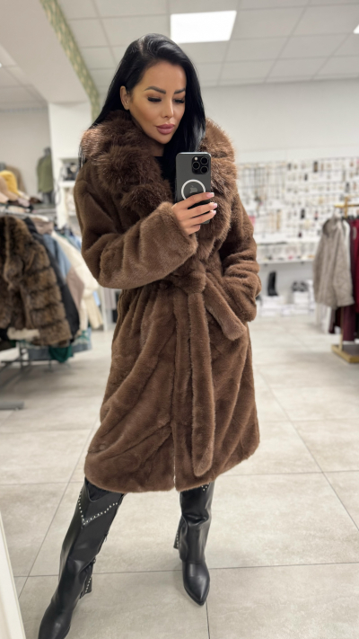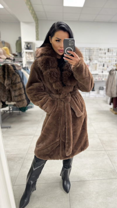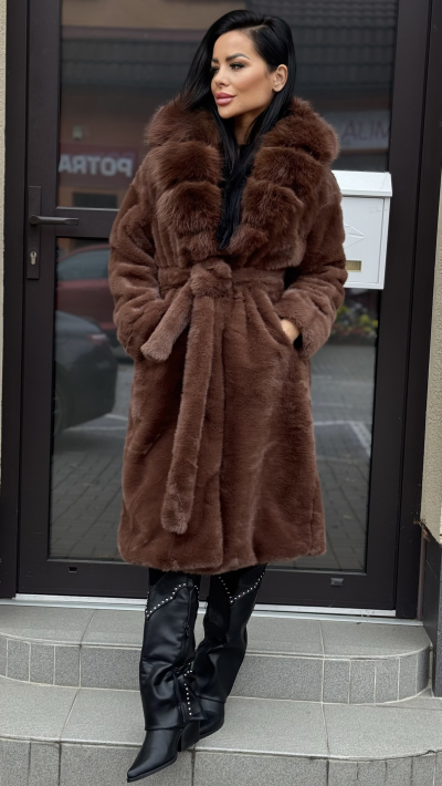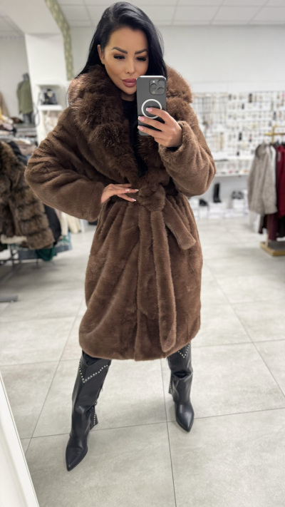 Dámsky kožušinový kabát – čokoládovohnedá farba