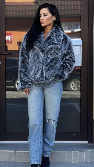 Tento kožuch je elegantný a výrazný kúsok, ideálny na chladnejšie dni. Má dlhší vlas s efektom sivej a čiernej umelej kožušiny, ktorý vytvára luxusný, no zároveň moderný vzhľad. Strih je mierne oversize, s vyšším golierom, ktorý pôsobí hrejivo a štýlovo. ???? Farba: sivá s čiernymi tónmi ???? Materiál: umelá kožušina (mäkká, príjemná na dotyk) ???? Strih: voľnejší, pohodlný, zapínanie vpredu ???? Veľkosti: S/M a M/L ???? Štýl: vhodný k džínsom aj elegantným nohaviciam či sukni ???? Tip na nosenie: Skombinujte s úzkymi džínsami alebo koženými legínami a členkovými čižmami pre chic zimný look.