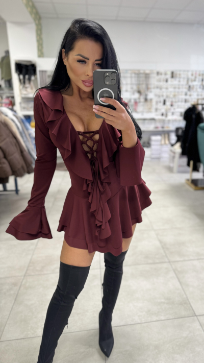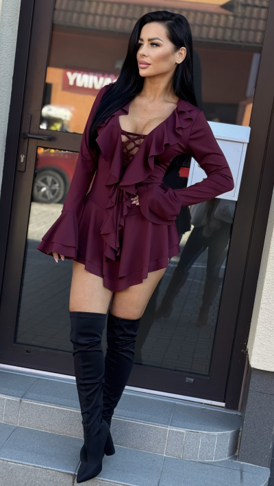 Bordový sexy overal