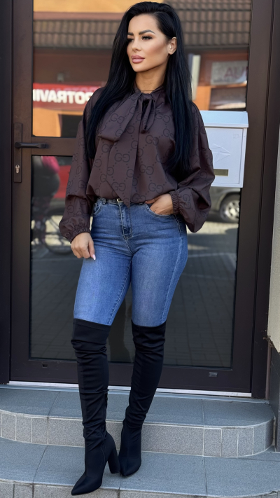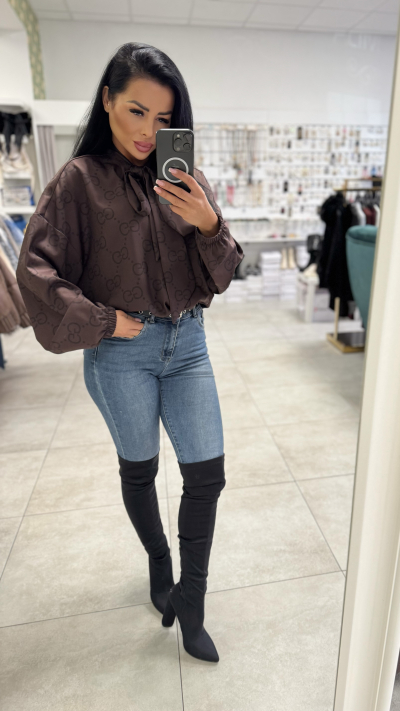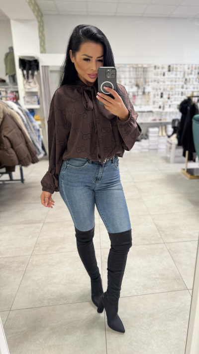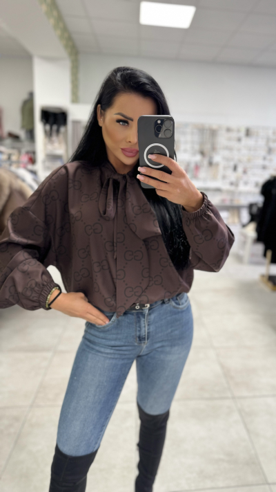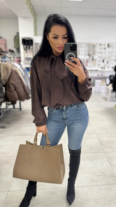Dámska hnedá blúzka s mašľou