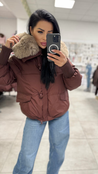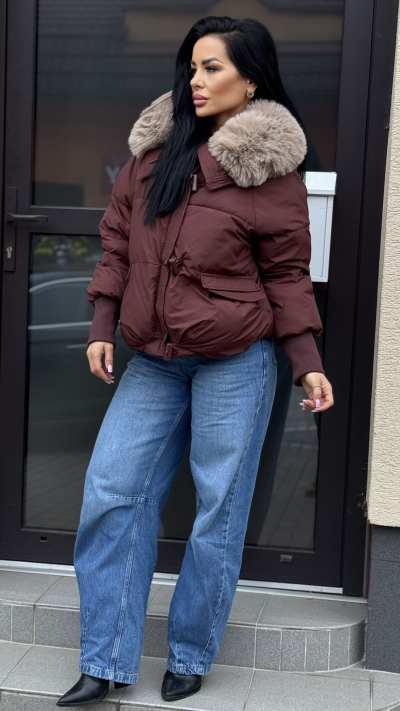 Dámska zimná bunda s odnímateľnou kožušinkou – S až XXL Táto štýlová dámska zimná bunda spája komfort, teplo a moderný vzhľad. Je vyrobená z príjemného, hrejivého materiálu, ktorý skvelo chráni pred zimou aj vetrom. Bunda má krásny bohatý kožušinový golier, ktorý dodáva luxusnejší vzhľad – a čo je skvelé, kožušinka sa dá jednoducho odopnúť, takže si ju môžeš prispôsobiť počasiu aj štýlu. Vlastnosti: • pohodlný, mäkko zateplený strih • odnímateľná kožušinka na golieri • elastické patenty na rukávoch pre lepšie držanie tepla • praktické predné vrecká • zapínanie na zips • jemne oversized efekt, veľmi lichotivý Dostupné veľkosti: S, M, L, XL, XXL Farba: Teplá hnedá s prírodnou kožušinkou Táto bunda je ideálna na zimné mesiace – teplá, pohodlná.