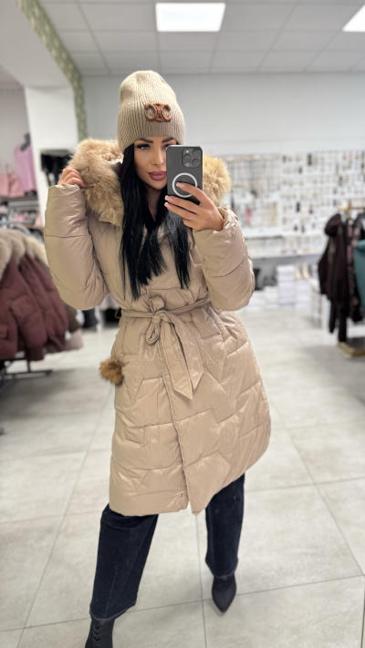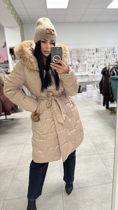 Objavte luxusnú dámsku zimnú bundu s naturalnou kožušinou, ktorá spája teplo, štýl a maximálne pohodlie. Tento model v elegantnej béžovej farbe je ideálny na chladné zimné dni a vďaka kvalitnému prešívaniu poskytuje perfektnú tepelnú izoláciu.