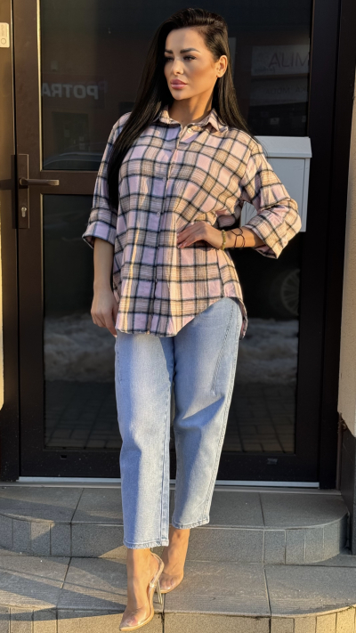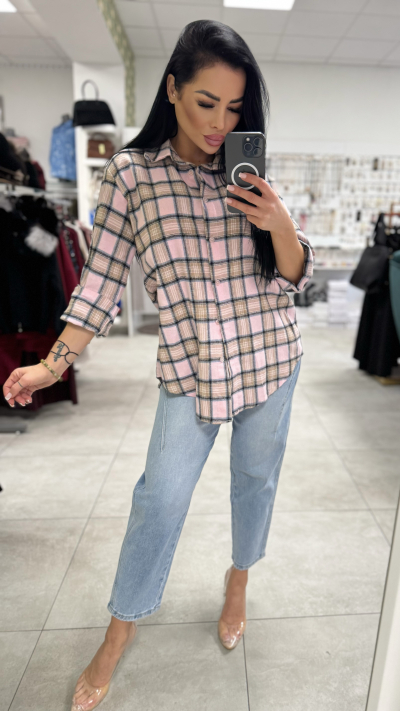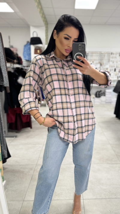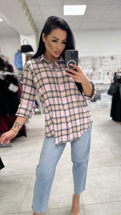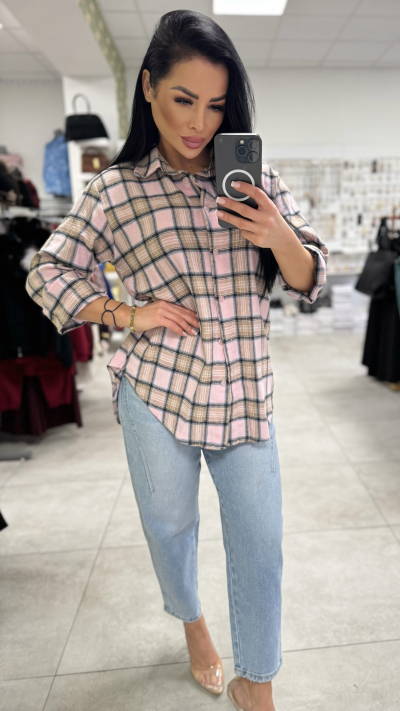 Dámska károvaná košeľa – bledoružová farba