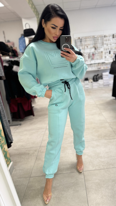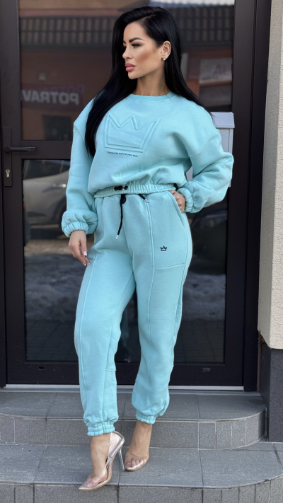Dámska, dvojdielna súprava v krásnom prevedení. Súprava je v jednofarebnom prevedení. Súprava sa skladá z nohavíc a mikiny. Je vyrobená z hrubšieho vysoko kvalitného materiálu. Perfektný kúsok vhodný na bežné nosenie.