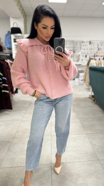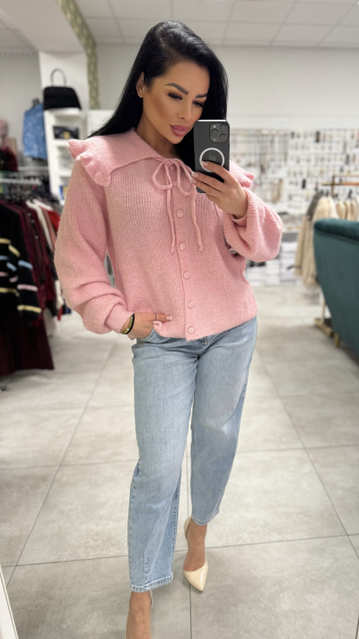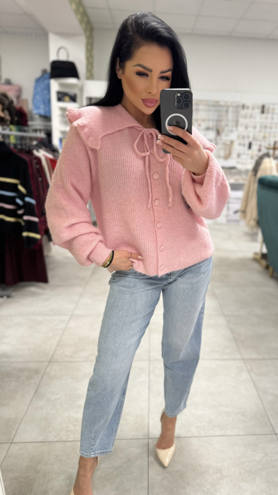 Dámsky sveter s golierom – ružová farba