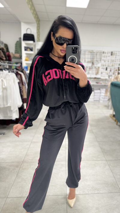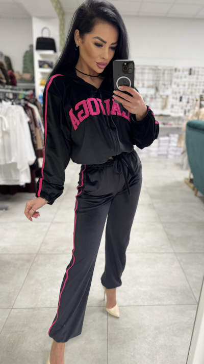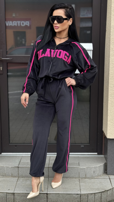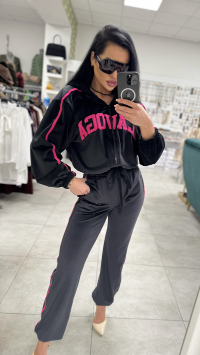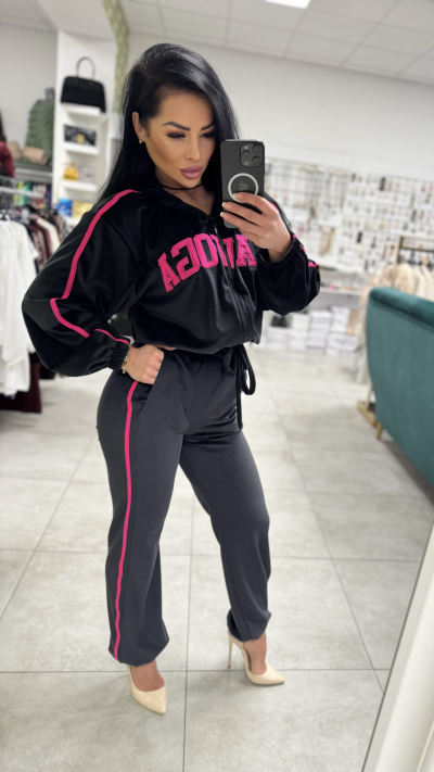 Dámska dvojdielna súprava. V krásnom čiernom prevedení. Súprava sa skladá z mikiny a nohavíc. Veľkosť je Univerzálna. Nohavice sú v páse na gumu, čím sa pekne prispôsobia na postavu.
