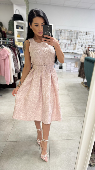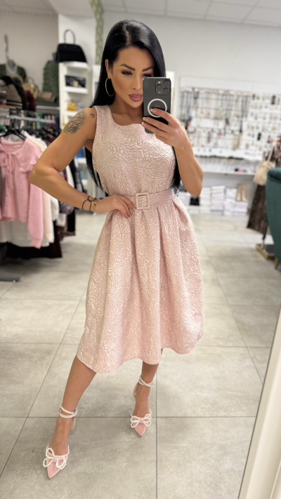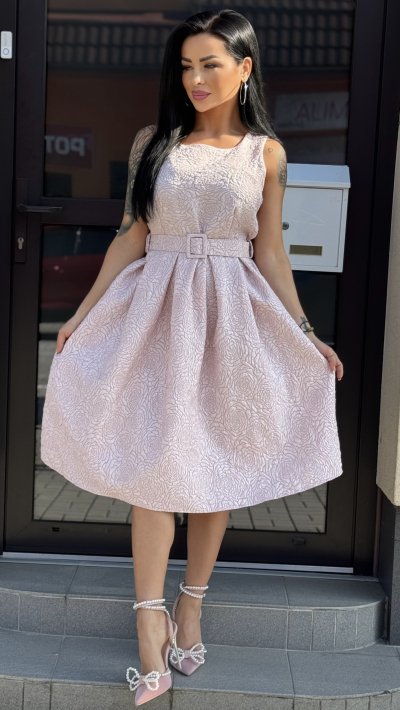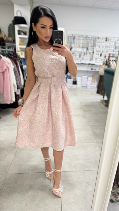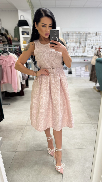Elegantne ružové šaty s opaskom