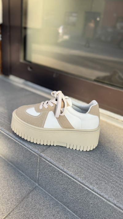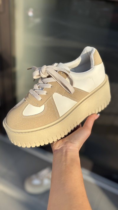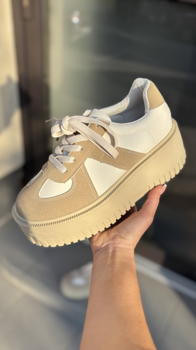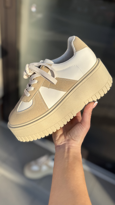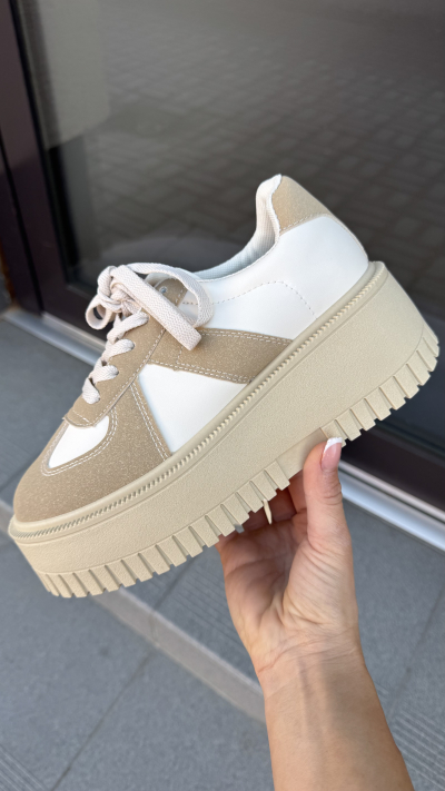 Dámske tenisky v béžovom prevedení. Tenisky sú vyrobené z ľahkého materiálu. Perfektne sa prispôsobia na postavu pred načas je na šnurovanie. Miška podrážky pri čísle 37 je cca 5,5 cm. Perfektný kúsok vhodný na bežné nosenie.