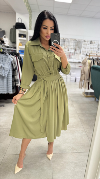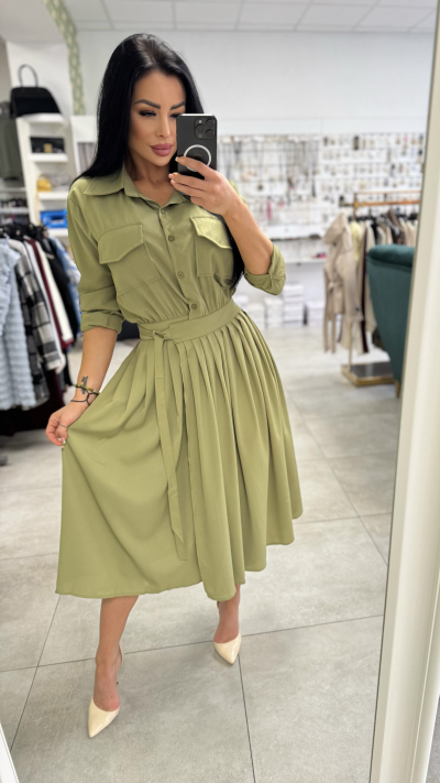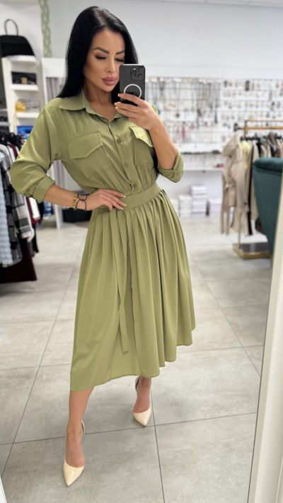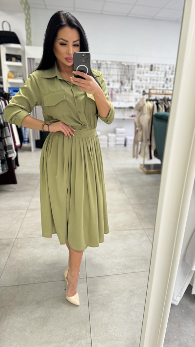 Elegantne dámske šaty so skladanou sukňou – KAKI farba