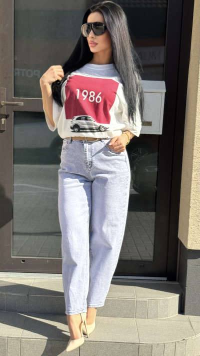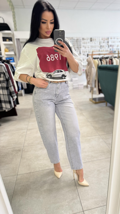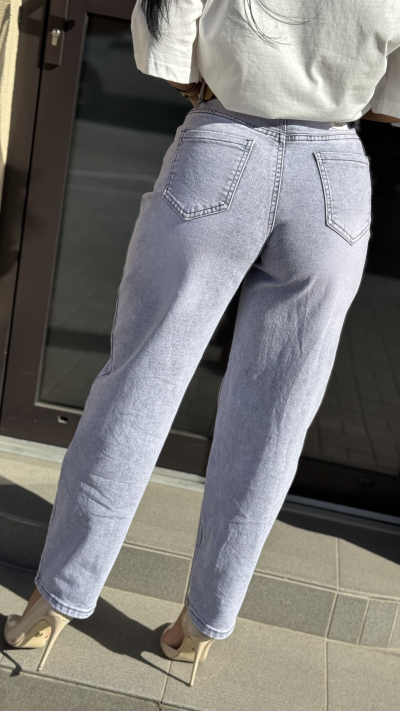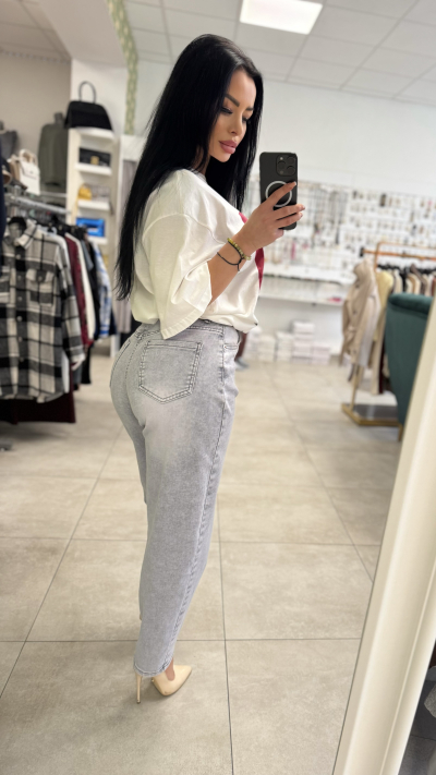 Trendové sivé džínsy s vysokým pásom
