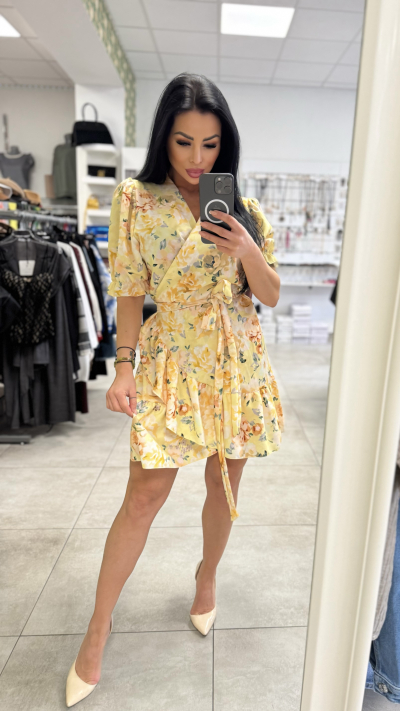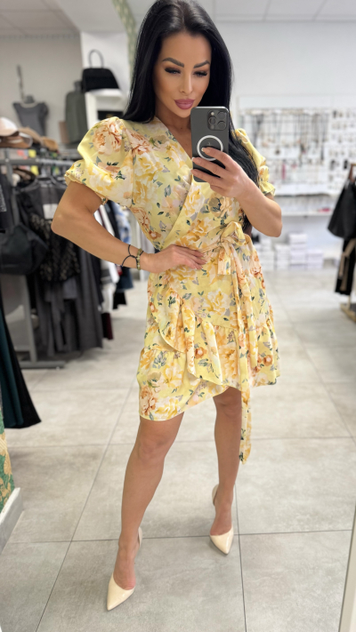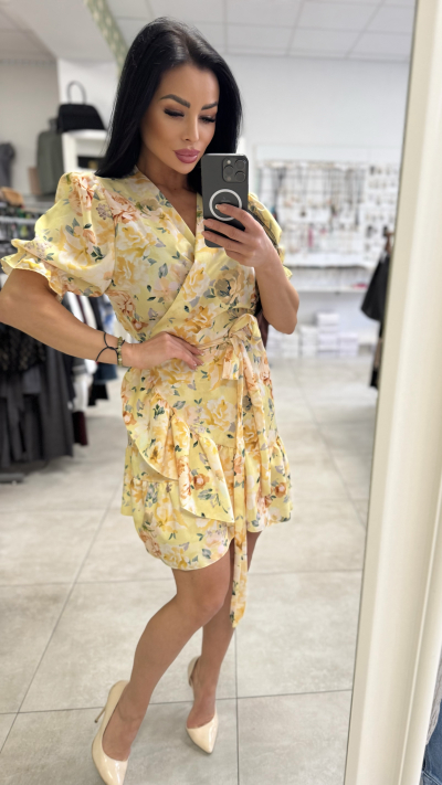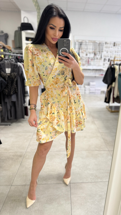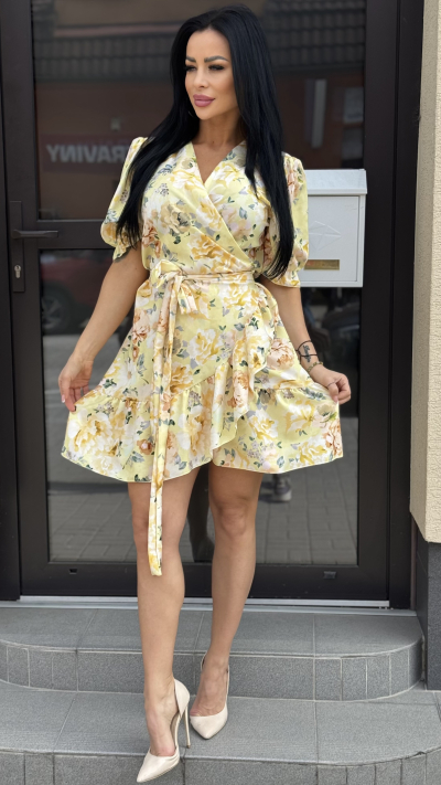 ???? Zavinovacie šaty s kvetinovým vzorom – žlté