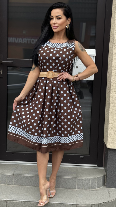 Hnedé šaty s guličkami